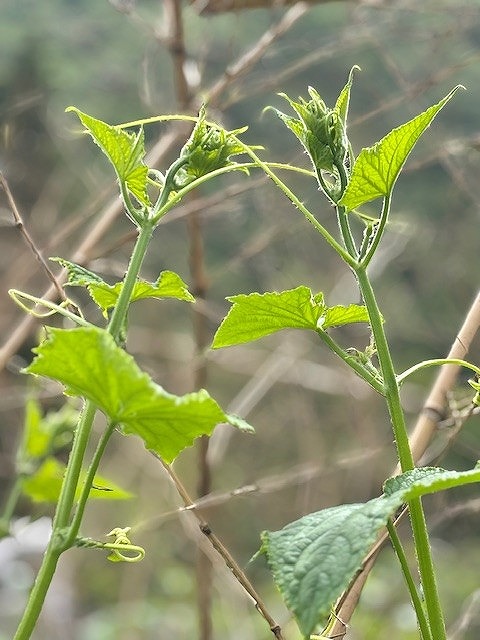 蔓を伸ばして微笑むキウリ