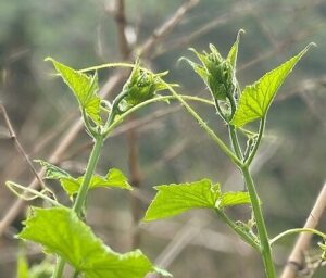 この葉っぱの子ども達は、まるでこしょこしょ話をしているようで、とても可愛いなと感じました。羽淵キウリの葉っぱ達です。